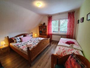 Das Haus beinhaltet zwei abschließbare Ferienwohnungen (insgesamt 130m²), jeweils eine im Obergeschoss und Erdgeschoss. Die Ferienwohnungen sind über ein Treppenhaus miteinander verbunden. Eine tolle Unterkunft für befreundete Familien!